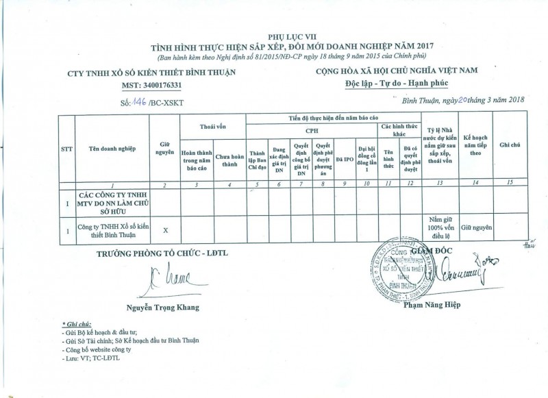 TÌNH HÌNH THỰC HIỆN SẮP XẾP, ĐỔI MỚI DOANH NGHIỆP NĂM 2017