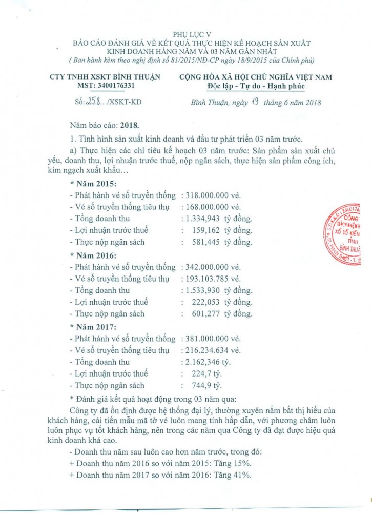 BÁO CÁO ĐÁNH GIÁ KẾT QUẢ THỰC HIỆN KẾ HOẠCH SXKD HÀNG NĂM VÀ 03 NĂM GẦN NHẤT (Phụ lục V) PKD
