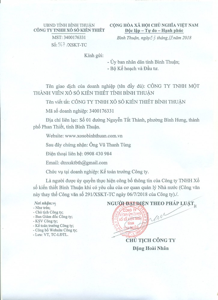 CÔNG BỐ CHỨC DANH KẾ TOÁN TRƯỞNG CÔNG TY