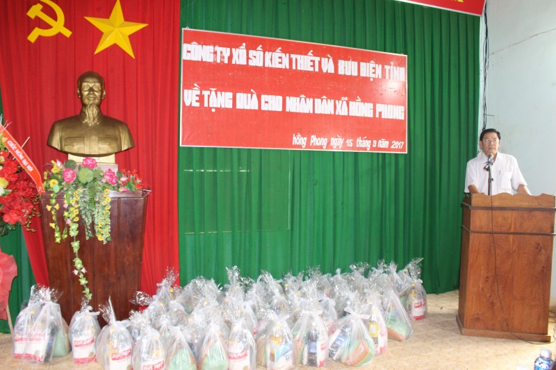 Sáng ngày 15/9/2017, Ông Huỳnh Cao Cảnh - Phó Giám đốc, cùng CBNV công ty có mặt tại UBND xã Hồng Phong trao tặng 50 suất quà trị giá 15.000.000đồng (300.000đồng/1 suất).