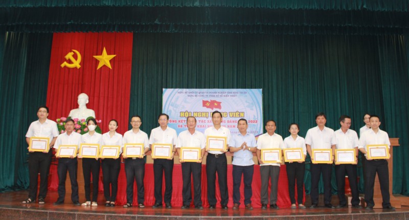 Đ/c Phạm Năng Hiệp - Phó Bí thư phụ trách Đảng bộ trao bằng khen cho tập thể và các đảng viên hoàn thành xuất sắc nhiệm vụ năm 2022.